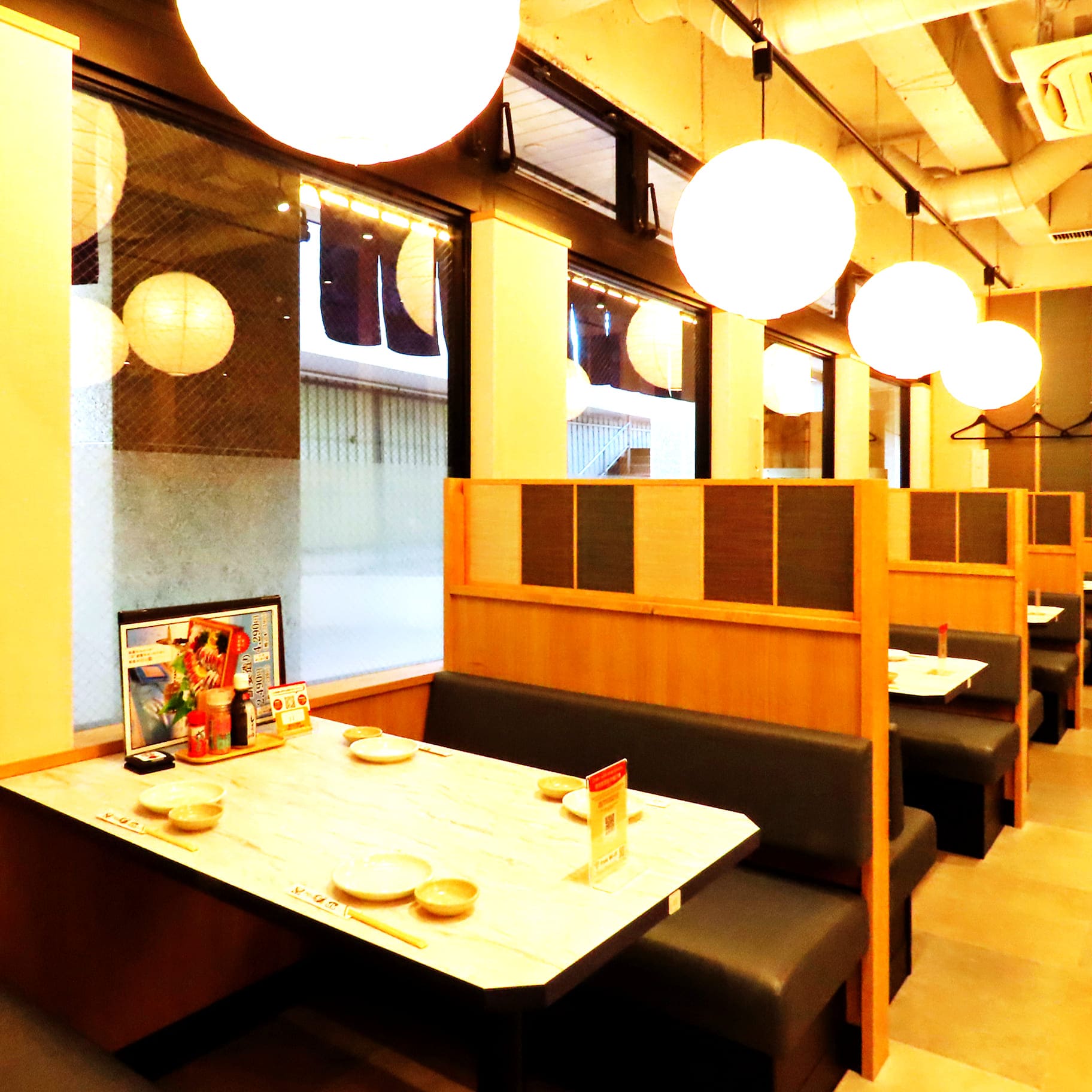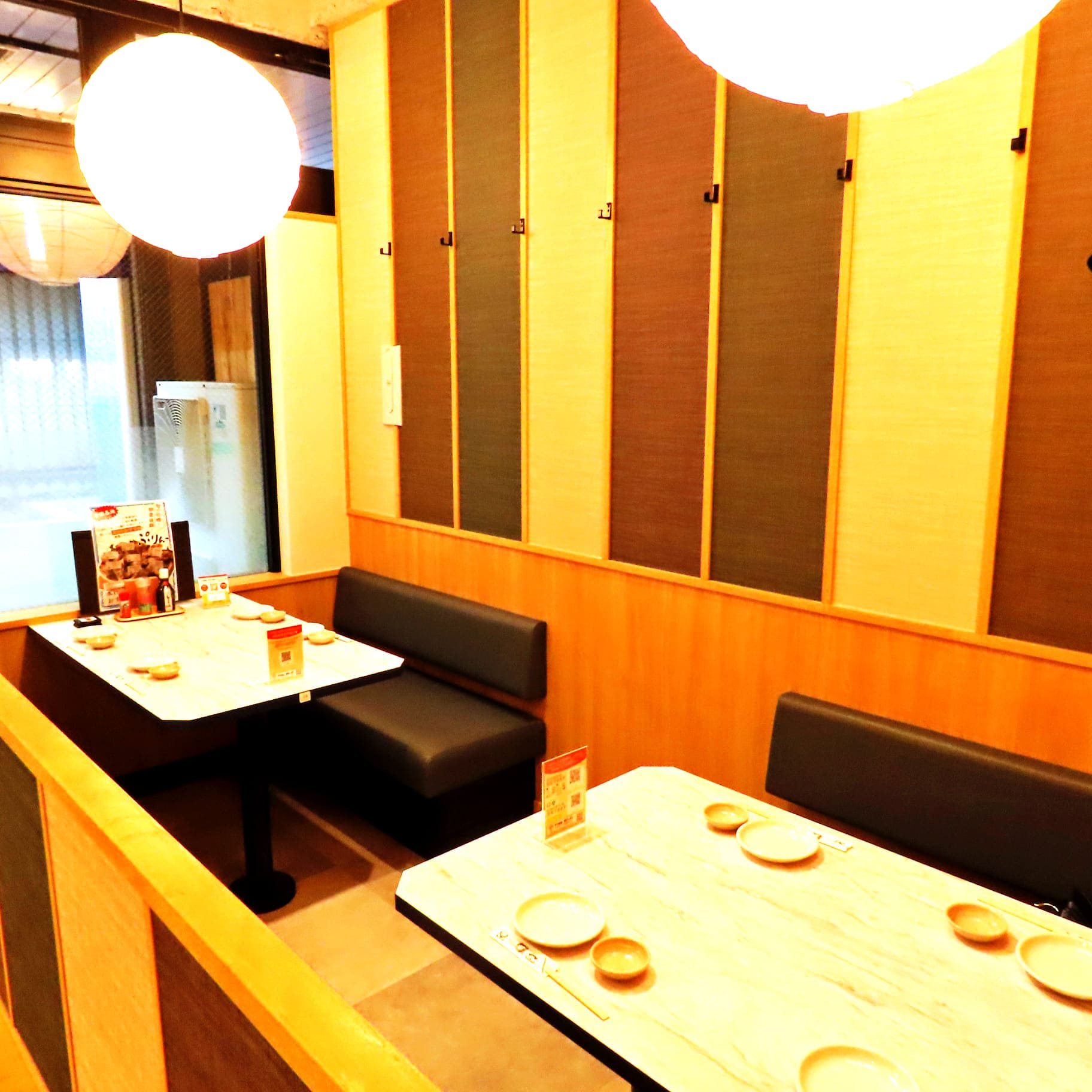 【少人数におすすめのテーブル席】開放感があり、間接照明がやさしく照らす、ほっと落ち着けるBOX席をご用意しております。デートや友との語らいなどに◎人気のお席ですのでご予約はお早目に。ご来店、心よりお待ちしております♪