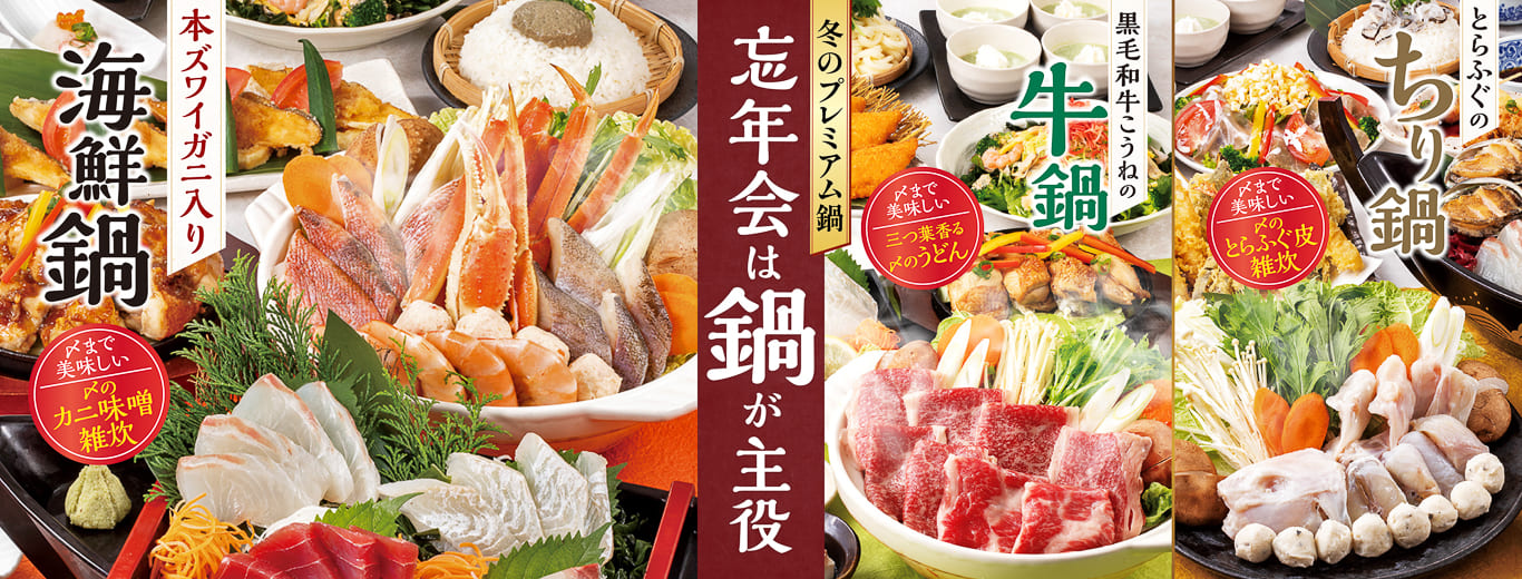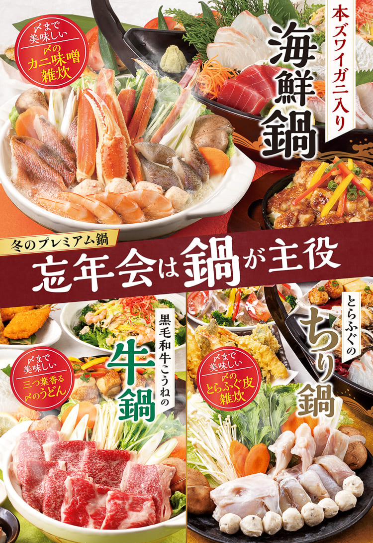 【忘年会は鍋が主役】3種のプレミアム宴会コース