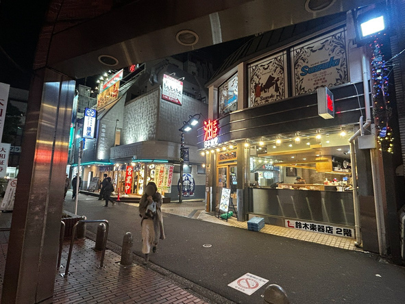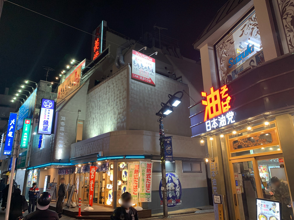 ③階段を上がった先、油そばの店舗の左隣に店舗が見えます。