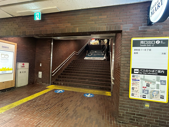 ②階段を上がった先、油そばの店舗の左隣に店舗が見えます。