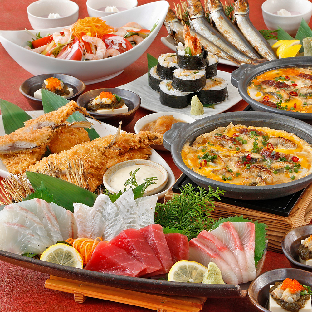 | 補足事項 | ============================================== ◆選べる感動特典あり◆感動の演出をお手伝い「横断幕」or「寄せ書き焼酎ボトル」 ※【1】もしくは【2】のどちらかをお選びください。併用はできません。 【1】寄せ書きできる焼酎ボトル1本プレゼント! 皆様の思いを寄せ書きにして、オリジナルのボトルをプレゼントしませんか? 4名様~7名様のご予約で「寄せ書き焼酎ボトル500ml(1本)」 8名様以上のご予約で「寄せ書き焼酎ボトル1.8L(1本)」をプレゼント! ※ご利用日の4日前までに店舗へご依頼ください。 【2】横断幕プレゼント! 歓迎会用・送迎会用・誕生日会用・還暦祝用の4種類をご用意させていただいております! 1、「感謝!ありがとうございました!!」 2、「歓迎!よろしくお願いします」 3、「お誕生日!おめでとうございます!」 4、「還暦御祝」 上記4種類からお選びください。 ※4名様以上のご予約で「横断幕」をプレゼント! ※ご利用日の4日前までに店舗へご依頼ください。 ============================================== ご宴会の用途に合わせて 色紙のご用意、花束の購入代行を承ります。 ※詳細は店舗にお問い合わせください。 お昼の宴会・二次会等もお気軽にご相談下さい。 ============================================== ※写真はイメージです。 ※+550円(税込)で【プレミアム飲み放題】にグレードアップ♪ ※飲み放題のラストオーダーは30分前となります。 ※刺身の内容は変わる場合がございます。 ※ご予約の時期により、料理内容が変わる場合がございます。 ※ご宴会のお時間は、2時間を目安にお願いいたします。 ※当日キャンセルの場合は、キャンセル料を申し受けさせていただく場合がございます。 ※その他、ご予算に応じて用意させて頂きます。 ※詳しくは係りの者にご相談下さい。 |