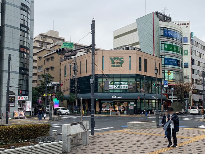 ②改札の階段を左方向へ歩き、Y'Smartのある信号へ