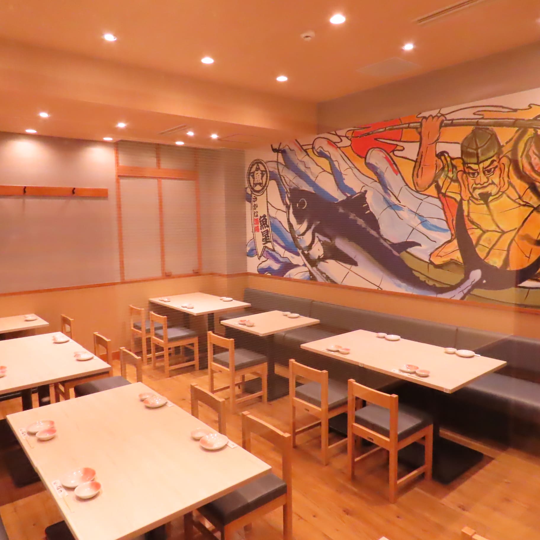 店内は温かみのある明かりで雰囲気抜群♪気の合うお友達との飲み会や女子会などに是非ご利用ください。お席は人数に合わせてご用意できます。ご相談ください!新鮮な海の幸を味わいながら、ゆったりとおくつろぎください。