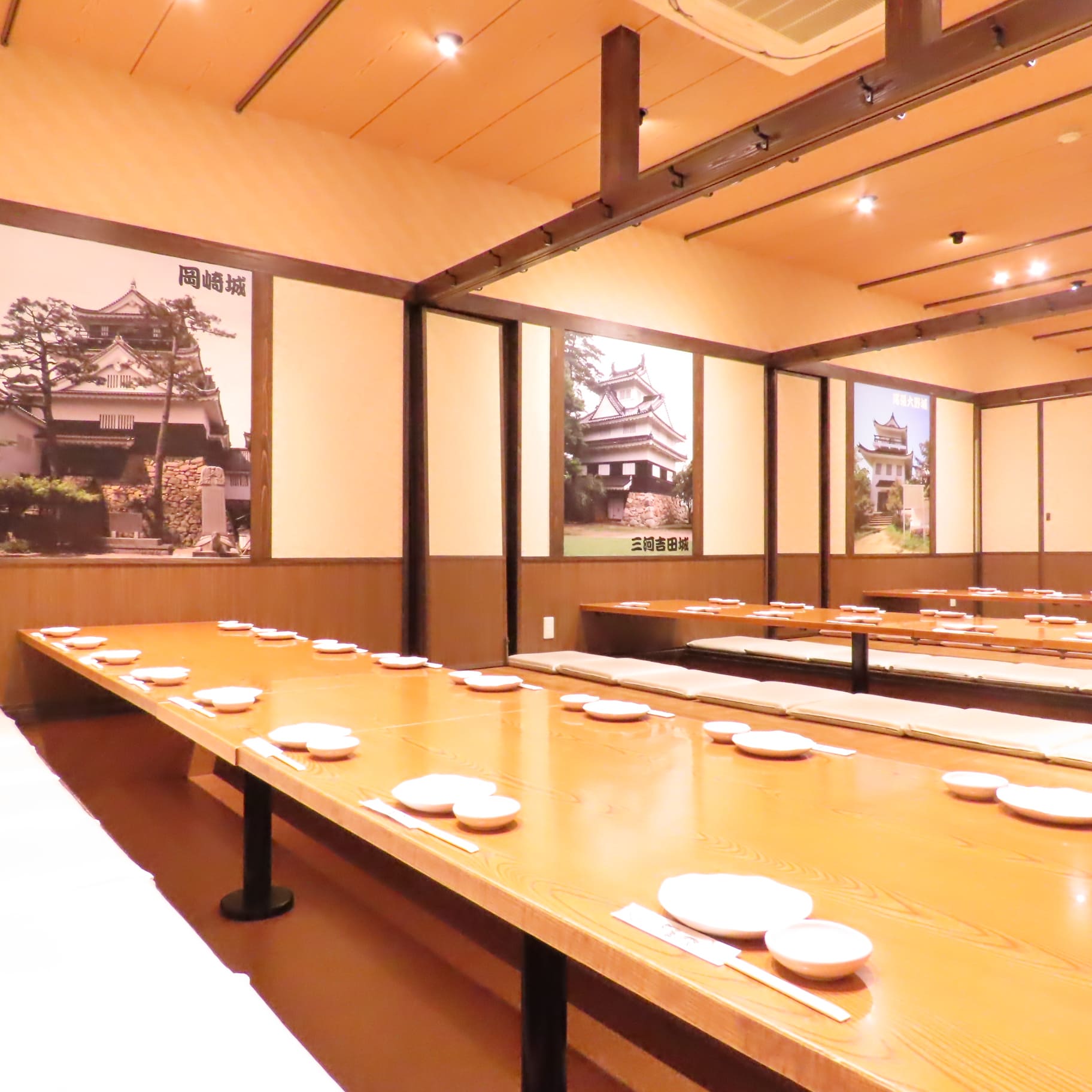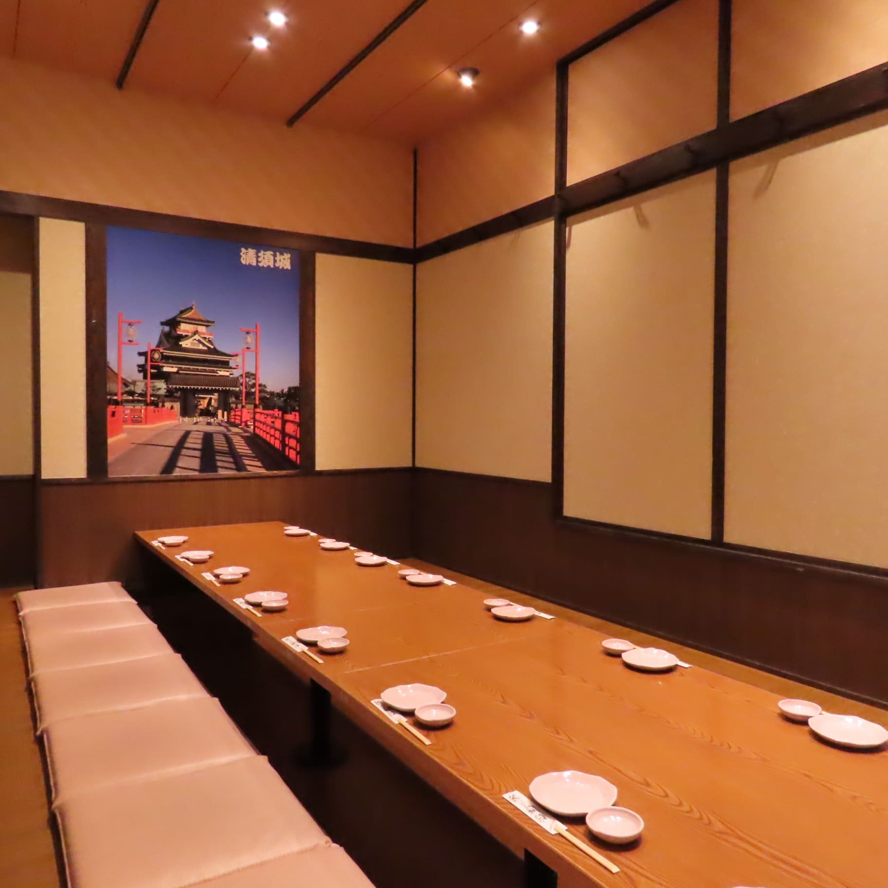 長時間の宴会でも脚を伸ばしながら寛げる掘りごたつございます。快適な空間で大人数の飲み会にもしっかり対応◎宴会向けの飲み放題付きコース料理や、幹事様にも嬉しいクーポンも多数ご用意しております!仕事終わりにも気軽にお立ち寄りください。